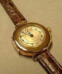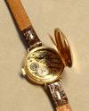 Damen-Armbanduhr, ca. 1910, 585er-Gold, zwei Rückwand-Deckel, Anker-Hemmung mit Steinpalette, Metall-Zifferblatt, sehr gut erhalten.